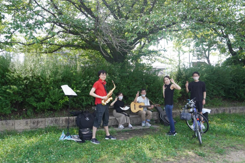 私も高校からギターをやっていて、今は同僚とバンドを組んでるんやけど、スタジオで練習するなら鴨川でやる?って提案してみたらその開放感にハマって。